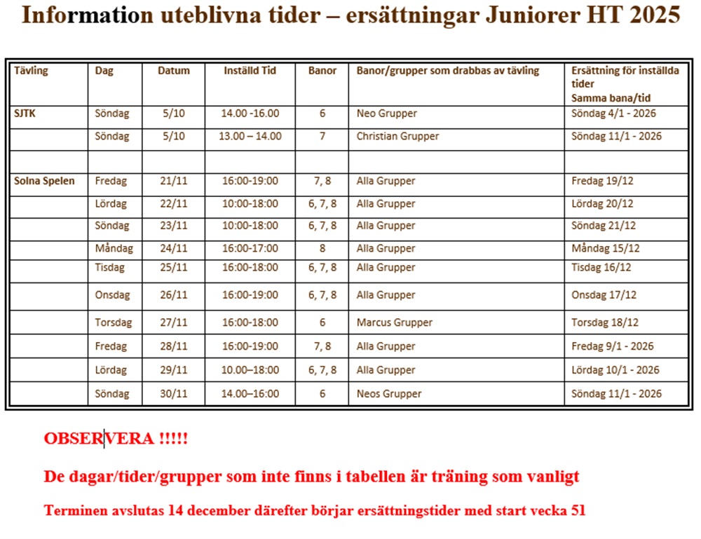 Information uteblivna tider – HT 2025