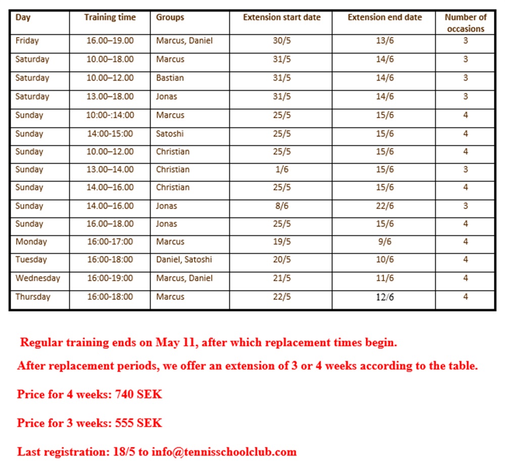 Reminder cancelled times – replacements spring VT 2025