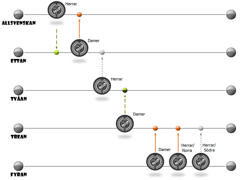 Vi börjar närma oss upploppet i seniorserierna och har spännande veckor framför oss. Alla våra lag är inblandade i direktuppflyttning eller kval, såhär ser det ut i skrivande stund: