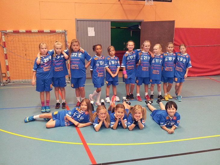 Samling hade vi klockan 12:45 på söndagen, alla som kunde vara med kom i sina matchkläder, humöret på topp och energin flödade. Frågorna haglade, ”När ska vi samlas, när ska vi springa in, osv.” När klockan blev 13:15 så tog vi med oss tjejerna ner till Lilla hallen, där väntade vi på damlaget, alla hade svårt att samla sig och vara lugna. När sedan damlaget kom så ökade stämningen ännu mer. Eftersom vi var 15 och damerna 12 så var det tre som fick springa in med två tjejer. Efteråt så var tjejerna uppspelta till tusen.