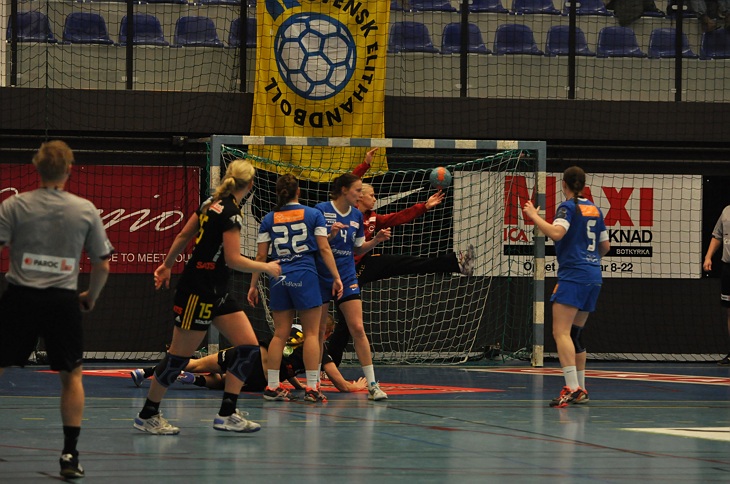 Hemmalaget stod inför en tuff uppgift när svenska mästarna kom på besök, dessutom med Ronja avstängd (efter 2 röda kort) och Jozefine Granström sjuk. Vi gratulerar Hanna Tolstrup som gör sina första mål i Elitserien.