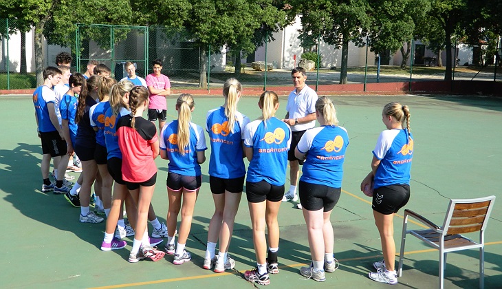 Väl på plats är det kroatisk handboll som gäller. Varje träning genomförs under ledning av någon av de kroatiska tränarna, bland annat Lindesbergs före detta, Ilija Puljevic, som du ser på bilden. Passen är 75 minuter långa, ett på morgonen/förmiddagen och ett på sen eftermiddag/kväll.