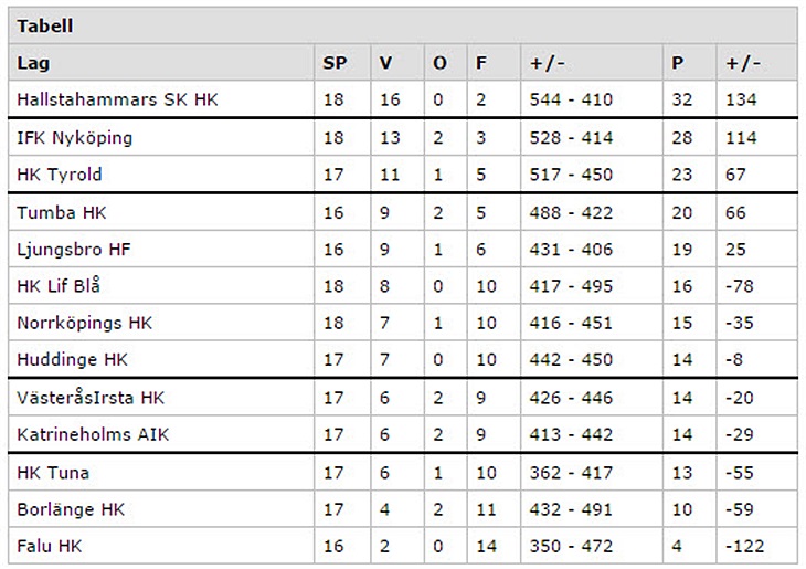 Lördag 17.30 möter vi Falu HK borta i Kopparhallen. Falu HK ligger sist i tabellen med bara fyra inspelade poäng. Här är vi naturligtvis stora favoriter, förra mötet slutade med seger, 32-20. Nu får vi se till att vara fullt fokuserade på bortaplan!