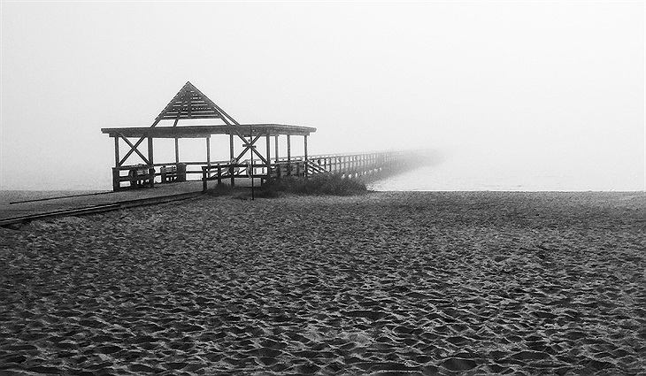 Ni har nog sett den förr, men kanske inte såhär - Åhusbryggan i morgondimma (foto: Lina Hildeby)