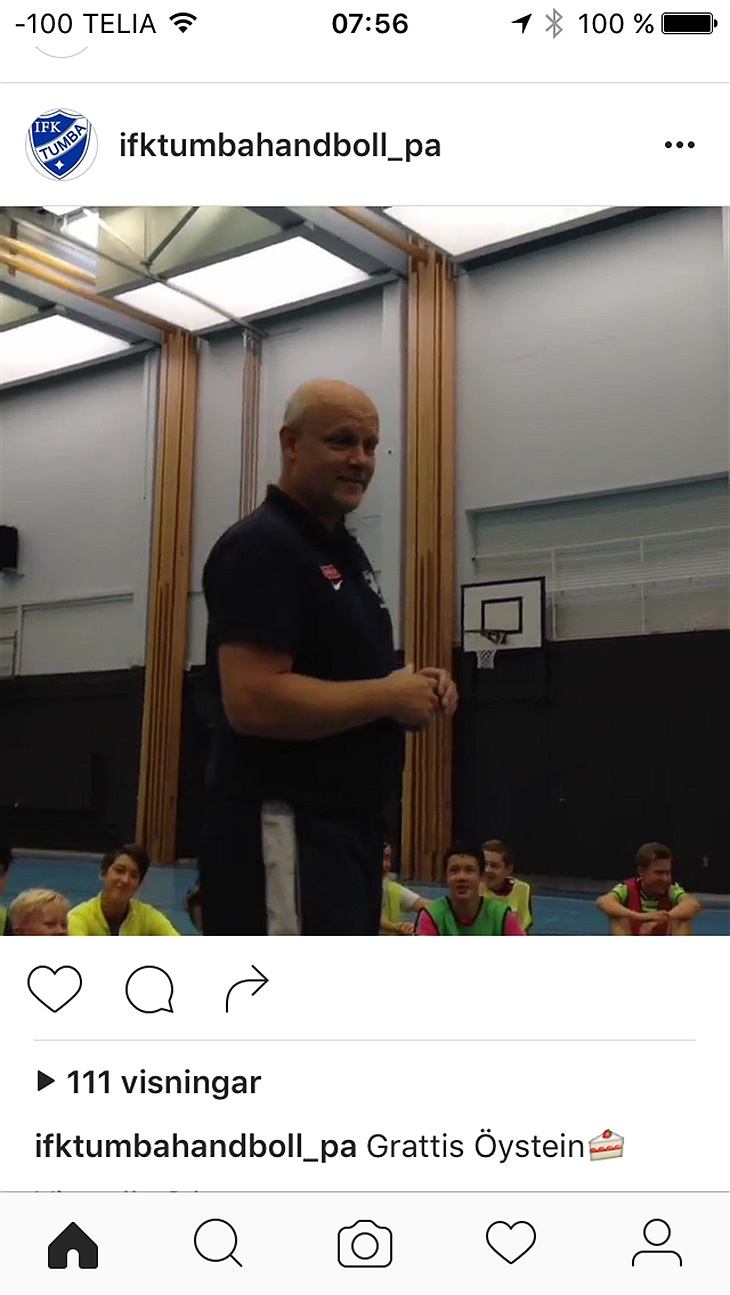 På Insta finns det möjlighet att se och höra hur det går till när tränaren för A-pojk fyller år och får hylla sig själv med skönsång: ifktumbahandboll_pa .