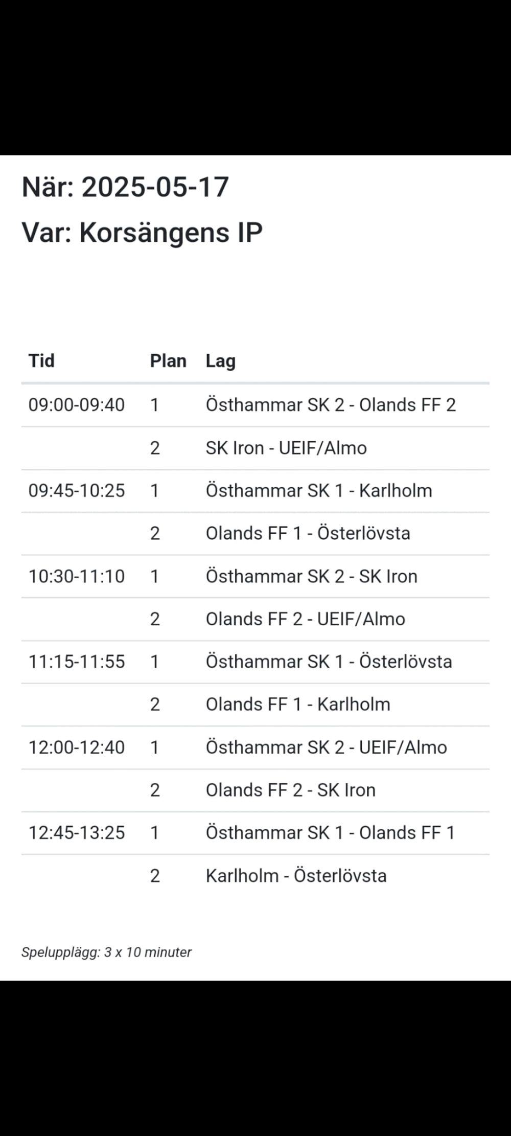 Nu har vi fått spelschema till poolspelet vid Korsängen.