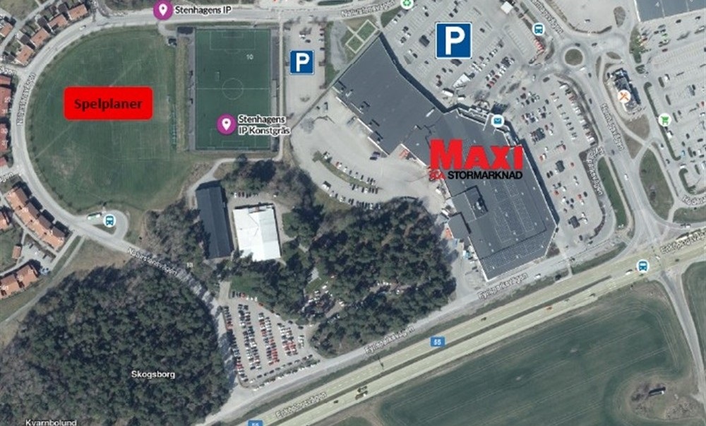 Parkering finns vid konstgräsplanen eller vid ICA Maxi.