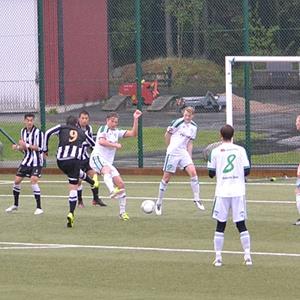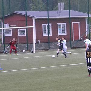 Thomas börjar därför andra med att dra ner Tommy på backen och ta in Caurell på kanten. UIF styr matchen ganska komfortabelt och i 53 minuten slår Tommy ett inlägg som Kvarneå säkert nickar i mål. MOIF satsar nu allt på ett kort och trycker på och UIF sätts under press. MOIF lyckas reducera i 67 minuten till 2-1 och vi på läktaren börjar bli lite oroliga. UIF svara dock nästa direkt med ett mycket snyggt anfall där Samer får ett pass i djupled och bryter in och passar till Victor som sätter bollen retfullt enkelt vid sidan om målvakten. MOIF ger dock inte upp utan kämpar på. UIF klarar dock av att hålla undan och matchen slutar 3-1.