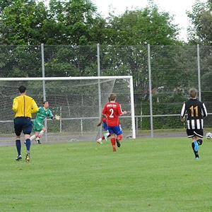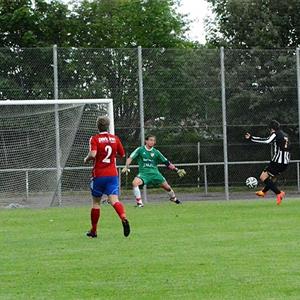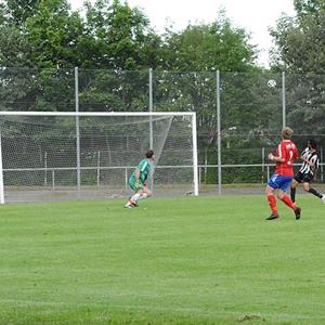 UIF bjuder på bländande spel i första halvlek! 1-0 kommer efter det att bollen lyfts ut på kanten till Nema som tar sig förbi sin back och passar snett bakåt till Danne som sätter den med en bredsida på sidan om målvakten. 2-0 lång crossboll från Elon till Nema som direkt på volley lyfter bollen över målvakten. Hur snyggt som helst! Några minuter senare smäller det igen. Goden fintar upp försvarande back på läktaren och passar den hårt in till Tommy som bara behöver stöta bollen i mål. 3-1 kommer efter en snygg nick från UNIKs sida på en frispark. Men bara några minuter innan paus så passar Elon en hård boll i djupet som Lillhager elegant tar emot och skjuter sedan vid sidan om målvakten. 4-1!