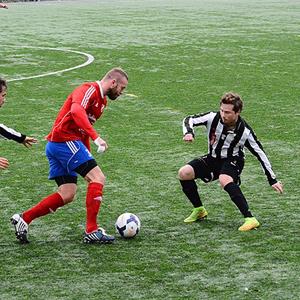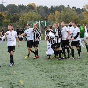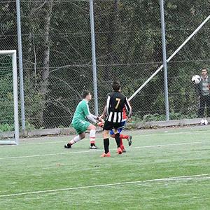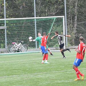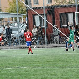 UIF tar direkt kommandot över matchen men det är först i 16:e minuten som första målet kommer. Tommy skjuter på försvarande spelare och får bollen i retur och andra gången gör han inget misstag: 1-0! UIF fortsätter att äga matchen och mål nummer 2 och 3 kommer mot slutet av första halvlek. 2-0 kommer efter det att Tommy tagit sig runt på kanten och slagt ett inlägg som Kvarneå snyggt nickar i mål. 3-0 är en repris på förra målet men nu är det Nema som slår inlägget till Kvarneå.
