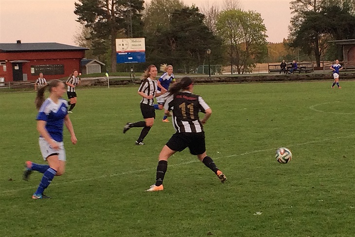 Idag möter vi säsongens hittills starkaste motstånd i bortamatchen mot Rimbo. Matchen visar verkligen två halvlekar. UIF tar direkt kommandot. Det tar nästan tio minuter innan Rimbo ens lyckas ta sig till vår planhalva. Vi håller ett bra tryck och skapar några halvchanser. Spelet jämnar gradvis ut sig men vi kan helt rättvist göra 1-0 strax före halvtid. Alda driver upp bollen på högerkanten och spelar in till Anna S som dribblar bort en Rimbotjej och säkert sätter 1-0. I andra halvlek möter vi ett mer taggat Rimbo samtidigt som vi tappar kvalitet i såväl positionsspel som passningsspel. Redan efter några minuter kvitterar Rimbo. En kvart senare har Alexandra ett bra läge att göra mål men istället vänder spelet och Rimbo gör 2-1. Och inte nog med det. Lite osäkert försvarspel och vips gör Rimbo ytterligare ett mål. Sista tjugo minuterna är det mer kämpa än skönspel från vår sida. Vi skapar några halvchanser men lyckas inte göra mål. Allt som allt tycker jag att vi var värda en poäng men, som klyschan säger, det är målen som räknas. /Johan