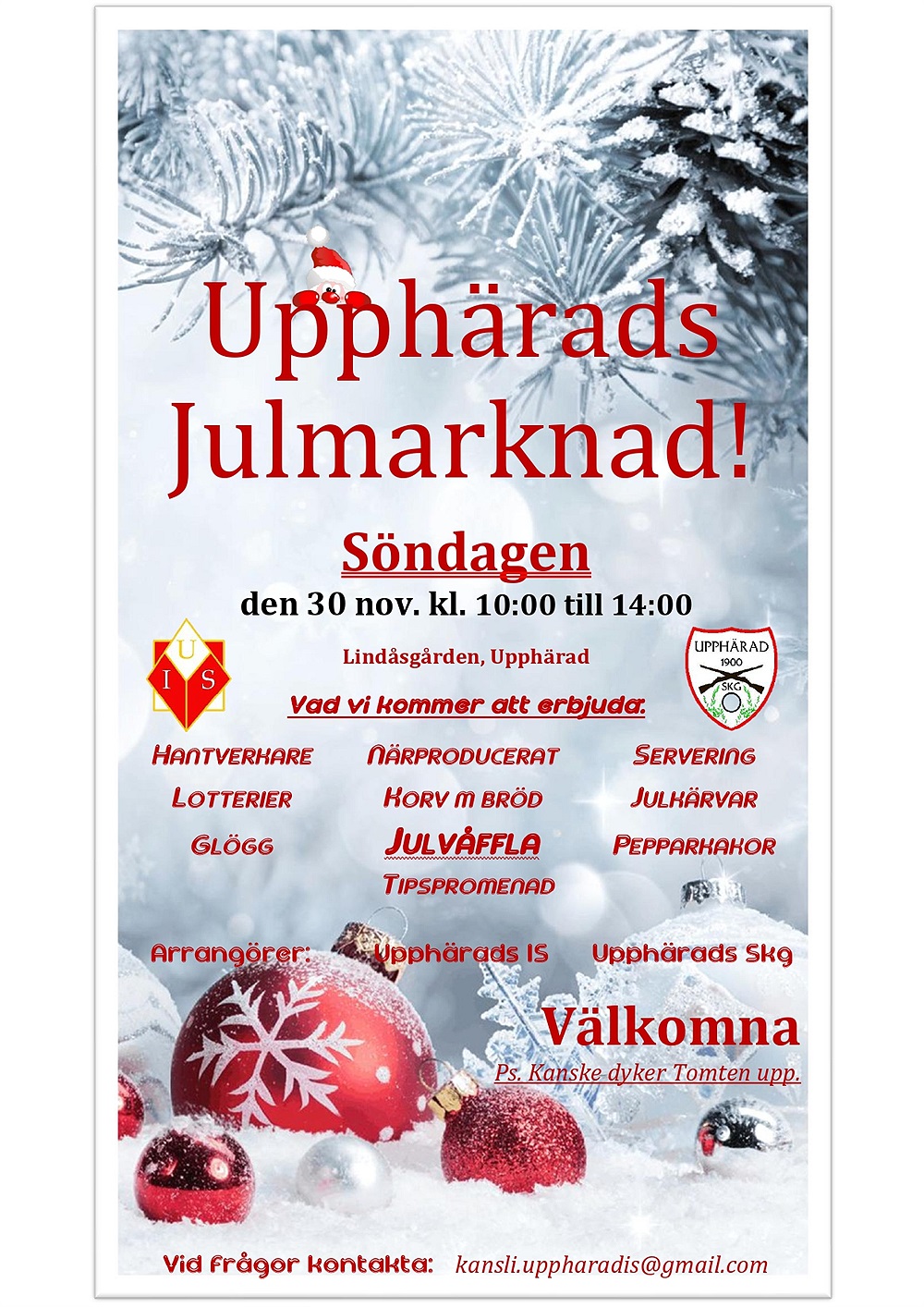 Som traditionen bjuder senaste år kommer julmarknaden äga rum sista söndagen i november, alltså den 30 november klockan 10-14 i Lindåsgården i Upphärad.