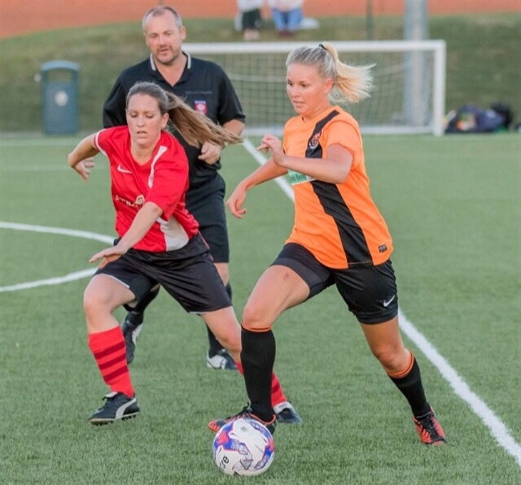 Amanda i Portchester AFC's orange matchställ mot klassiska Southampton FC i höstas.