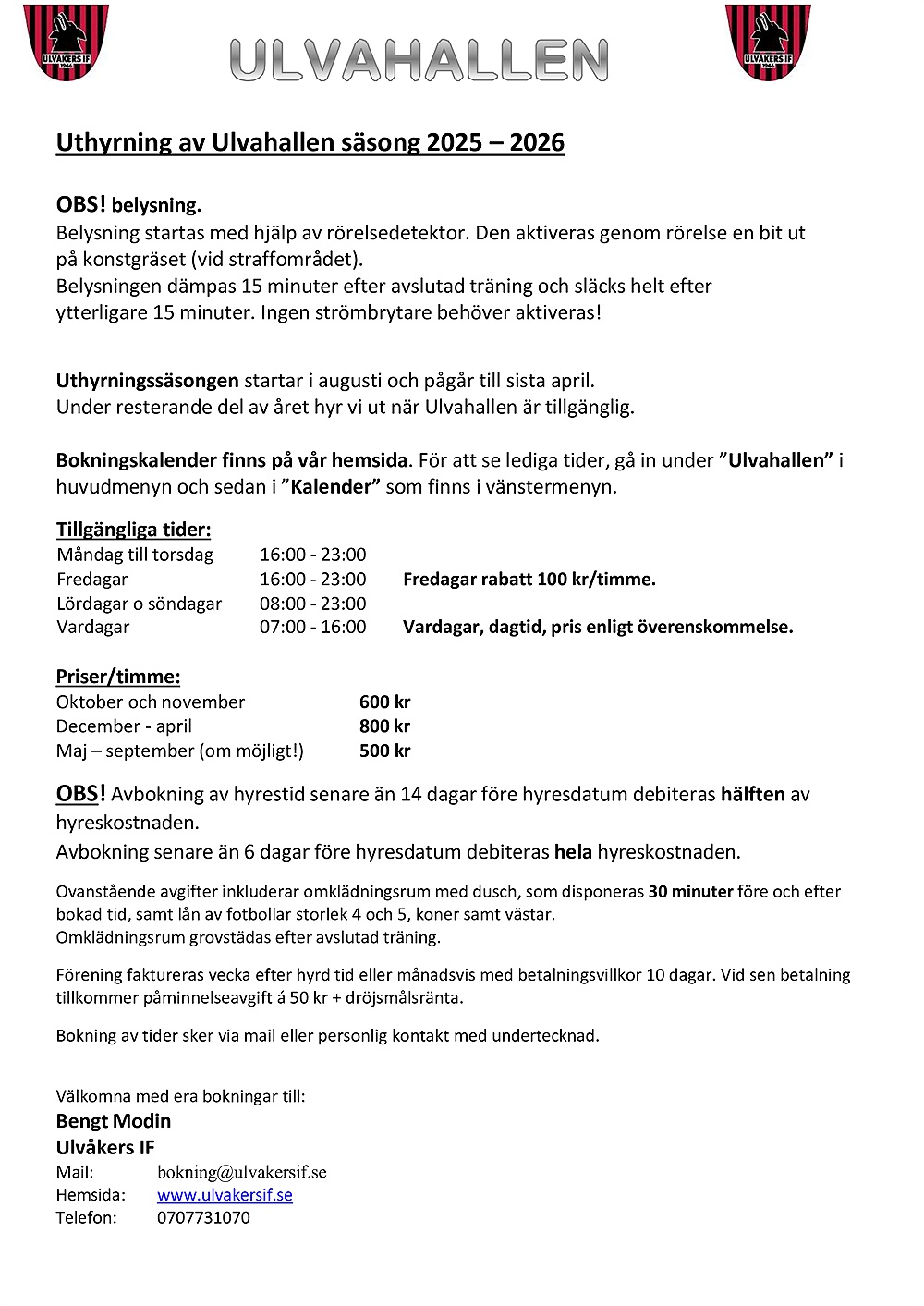 Ny e-postadress sen 2023-01-01 är bokning@ulvakersif.se.