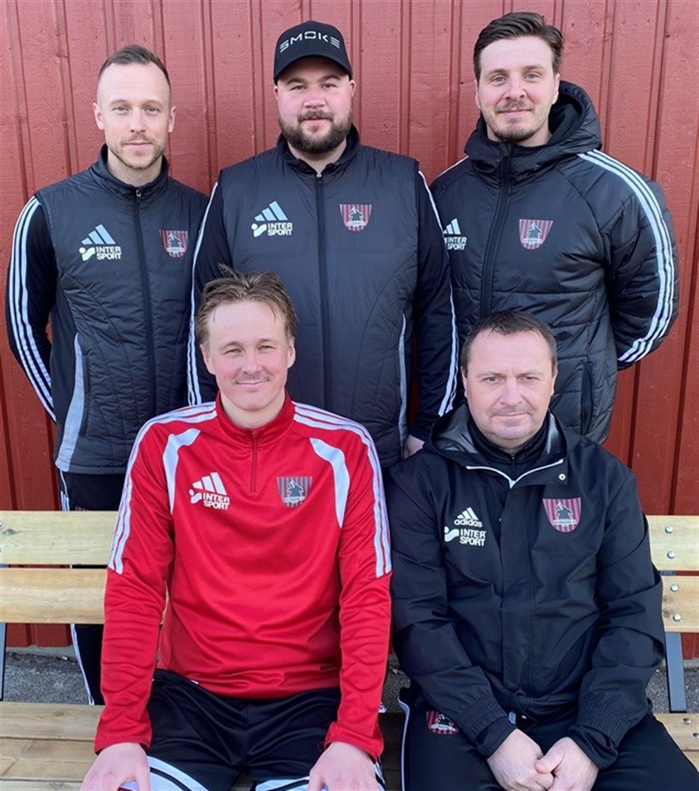 En förväntansfull tränar- och ledartrojka inför seriepremiären....stående fr v, Simon Kotka, Sebastian Gudmundsson och Ekrem Ibrasimovic. Sittande fr v Didrik Eriksson och Kenneth Karlsson.