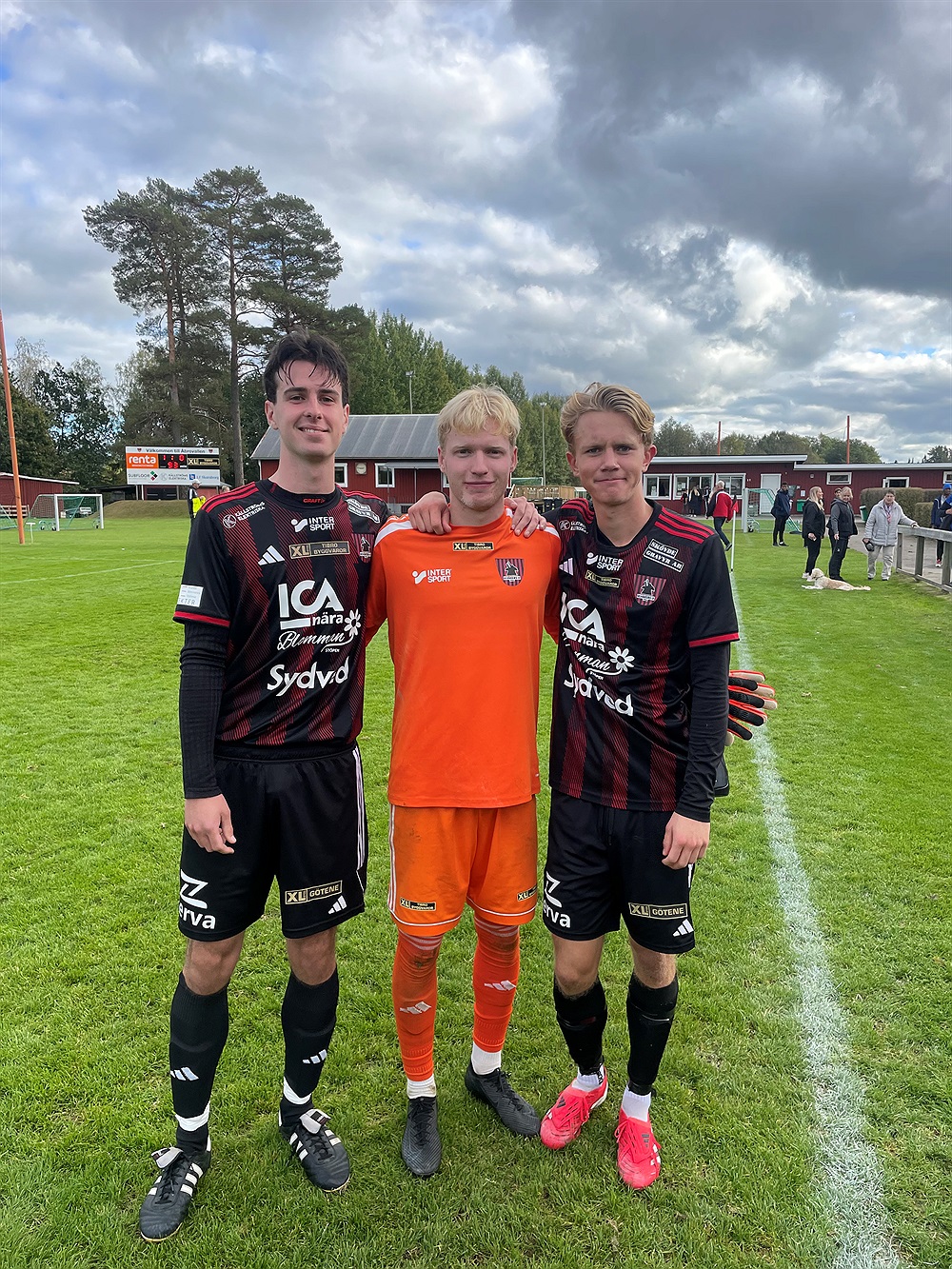 Tre glada Ulvar , målskytten Alfred Källerman , målvakten John Ericsson och debuterande mittbacken Martin Rosin.