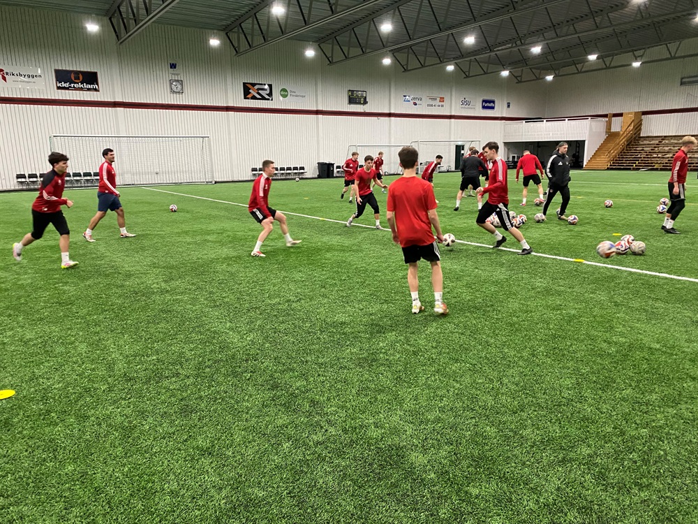 Laget har fram till nu tränat tre fotbollspass i veckan i Ulvahallen (samt ett fys pass/vecka på STC) och kommer nu ut på stor plan för första gången i år.