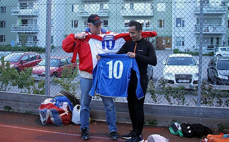 Javier lämnade innan matchen tillbaka sin gamla Aspudden-matchtröjor...