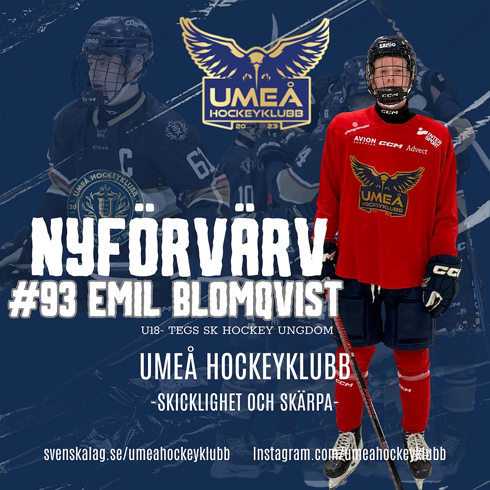 Vi fortsätter i samma tema och hälsa Emil Blomqvist välkommen till Umeå Hockeyklubb.