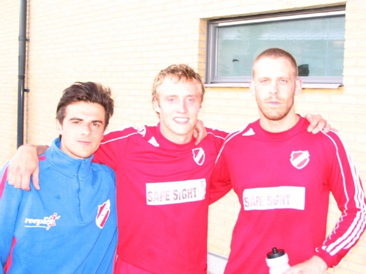 Med en svajig kamera lyckades ialla fall dagens poänggörare fångas på en bild. Eldin och Erik flankerar dagens man och nyförvärv, Filip Nekmouche.