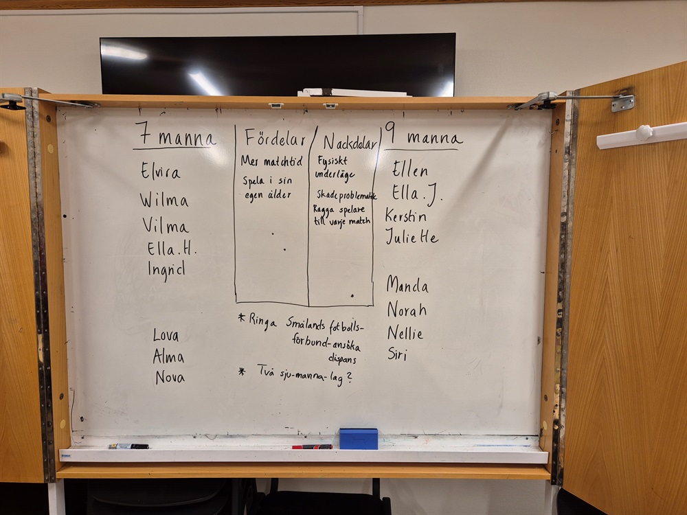 Vårt syfte med mötet var att samla in och lyfta för- nackdelar med seriespel på 7-manna plan/ 9-manna plan, då vi står i ett vägskäl inför kommande säsong i tjejlaget.
