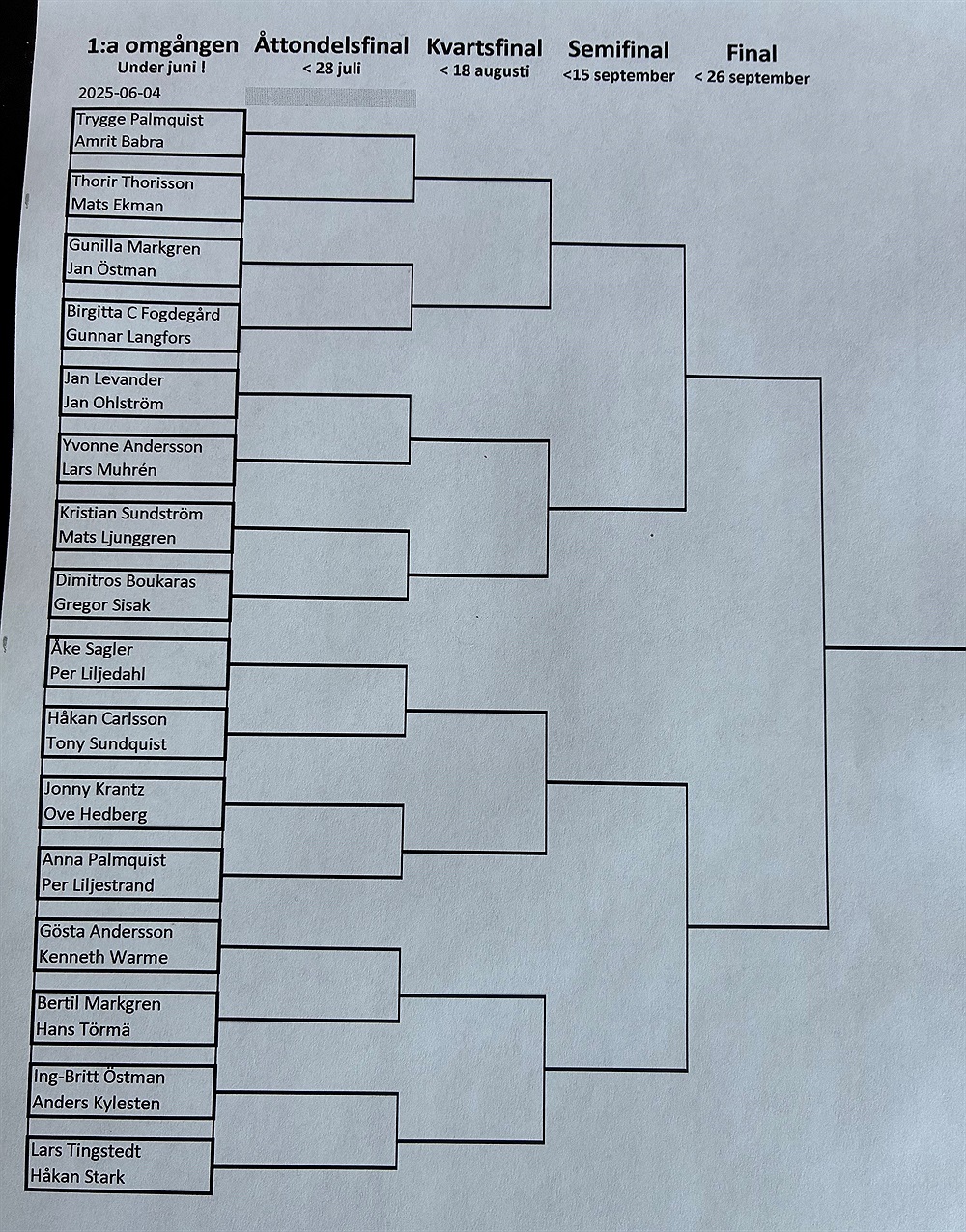 Lottningen av årets upplaga av Gustafs Skål är nu klar. Totalt 32 spelare skall i matchspel göra upp om en inteckning i Lars Höglunds vandringspris och att få ikläda sig den gröna kavajen. Spelschemat anslås på seniorernas anslagstavla senast den 4 juni. Första omgången skall vara färdigspelad till 30 juni. Vi önskar alla lycka till!