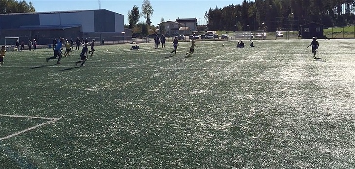 En soligt bländande och stor konstgräsplan väntade oss i Alsike. De ville fortsätta med de gamla 2014 reglerna från förbundet och spela med full plan.