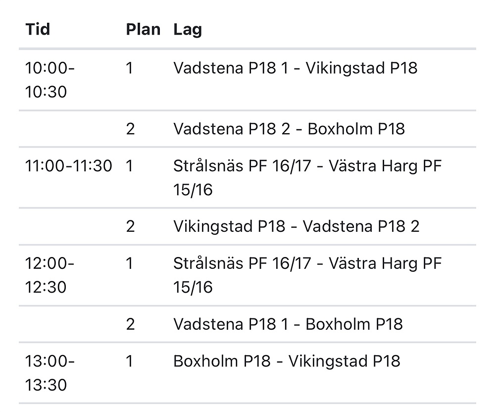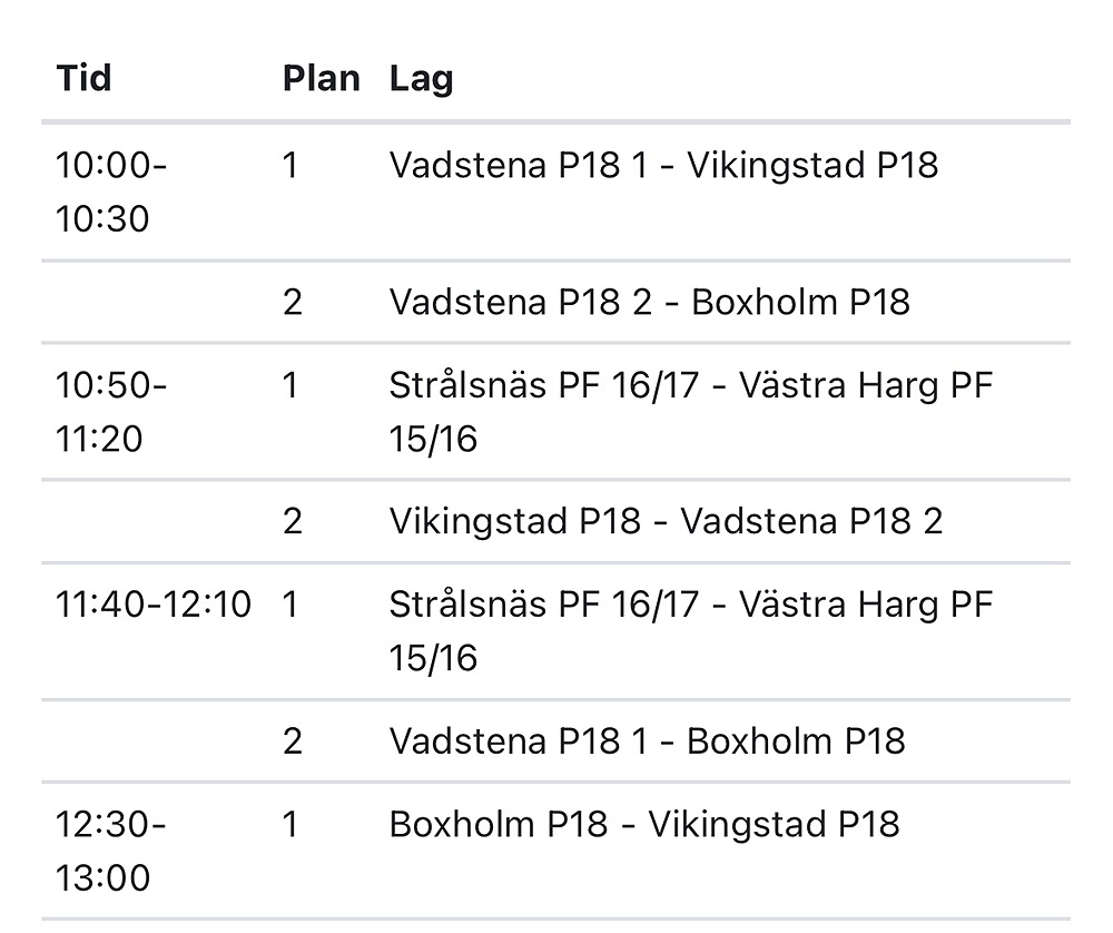Uppdaterat spelschema för lördagens sammandrag i Strålsnäs.