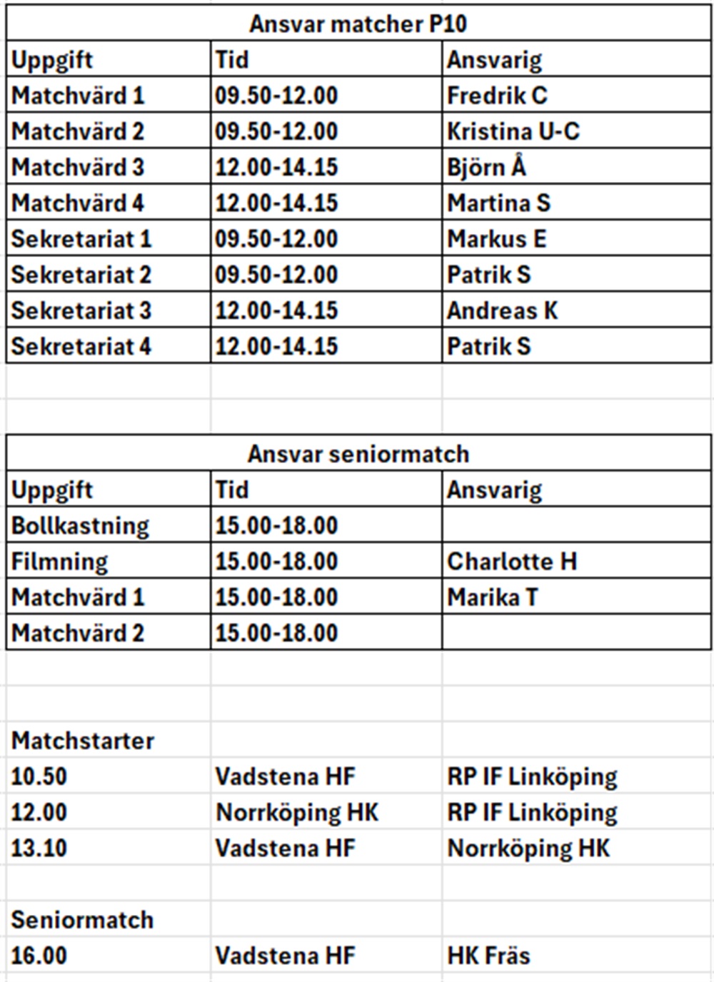 Nu har vi lyckats fylla de flesta ansvarsområden på söndag vilket ju är super! Hoppas att det blivit rätt i schemat.