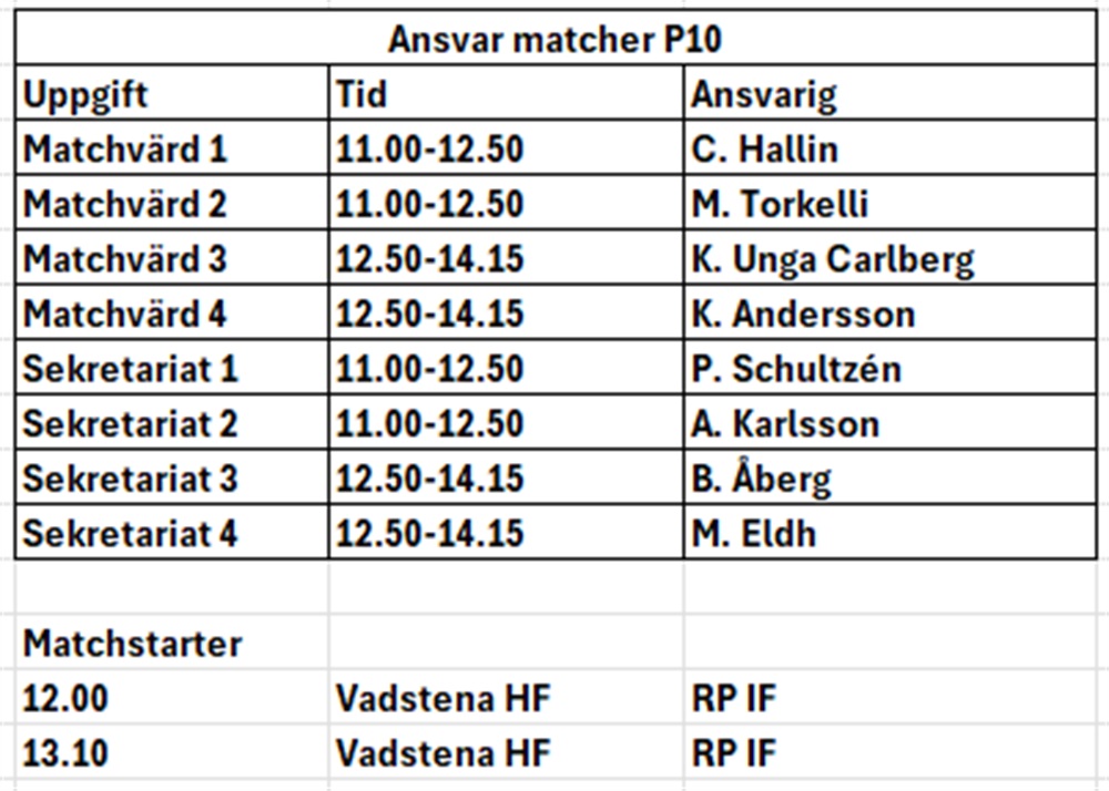 Vi behöver göra lite ändringar inför söndag då Hultic har lämnat återbud. Det blir istället två matcher mot RP med start 12 och 13.10.
