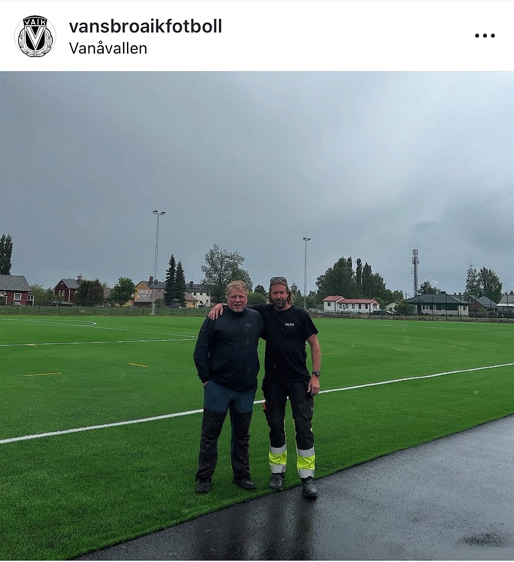 Mats Gyllenvåg och Mattias Magnusson - eldsjälarna som tillsammans med många andra har gjort bygget av konstgräsplanen möjligt.