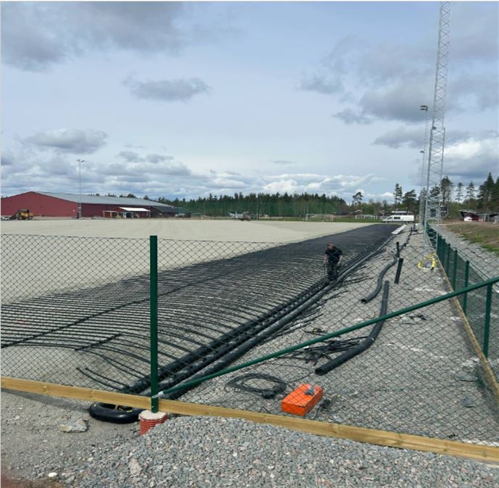 Under senaste veckan slutförde SKMA arbetet med grund uppbyggnaden till planen som planerat. Maskinerna kommer att vara kvar på bygget några veckor efter julledigheten för att slutföra “gamla vägen” in på området och ta hand om massorna och försköna. Arbetsgruppen fortsätter sitt arbete med offerter på konstgräs delen samt undersöka värmealternativ. Vi har stött på frågor kring detta som måste utredas bättre. Vi jobbar vidare på att få in mer pengar i strävan att utveckla området och de nya maskinerna som krävs. Tillgängligheten till planen är viktig och vi arbetar med storleken på asfaltsytan, som är en stor ekonomisk post.