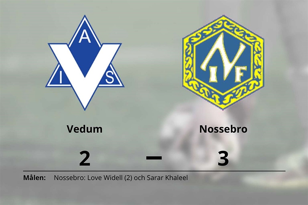 Det blev Nossebro som gick segrande ur mötet med Vedum i division 6 Trollhättan herr i fotboll på bortaplan, med 3-2 (2-1).