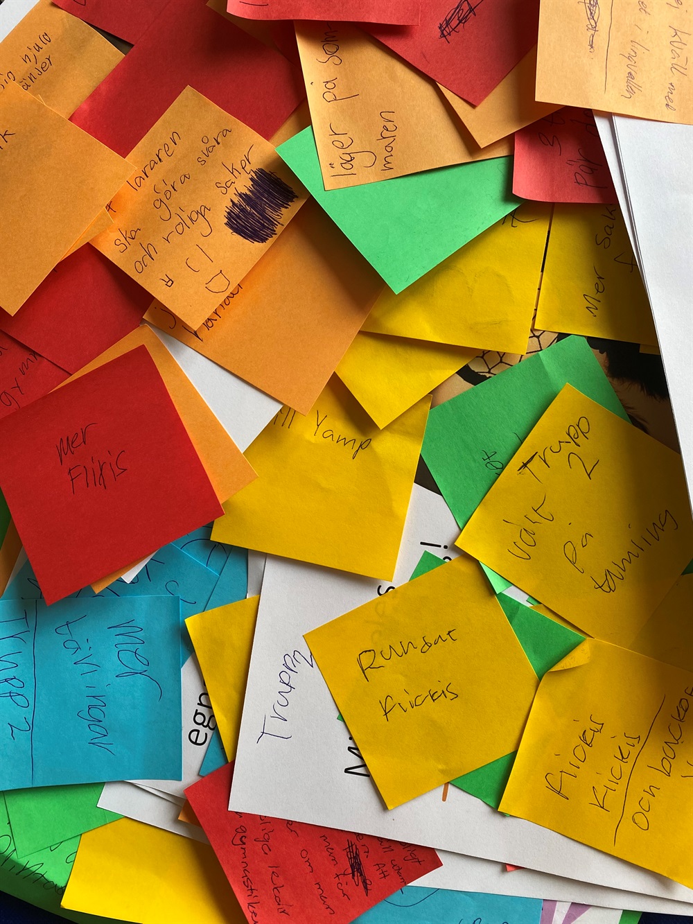 I torsdags hade vi barnens årsmöte och nästan 70 barn kom och delade med sig av sina tankar och idéer. Nu har vi 100-tals post it lappar att läsa igenom och gruppera inför ordinarie årsmöte.
