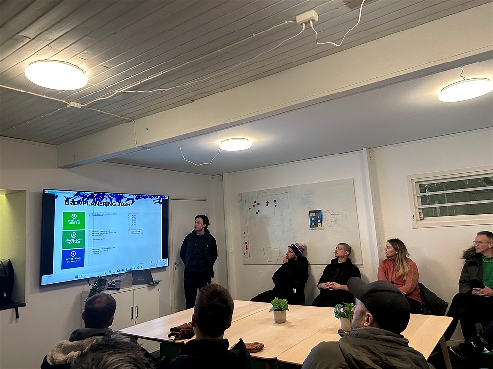 Säsongen startar ordentligt vecka 14 och då kommer vi att träna tre gånger fram tills dess under försäsongen är det två gånger.