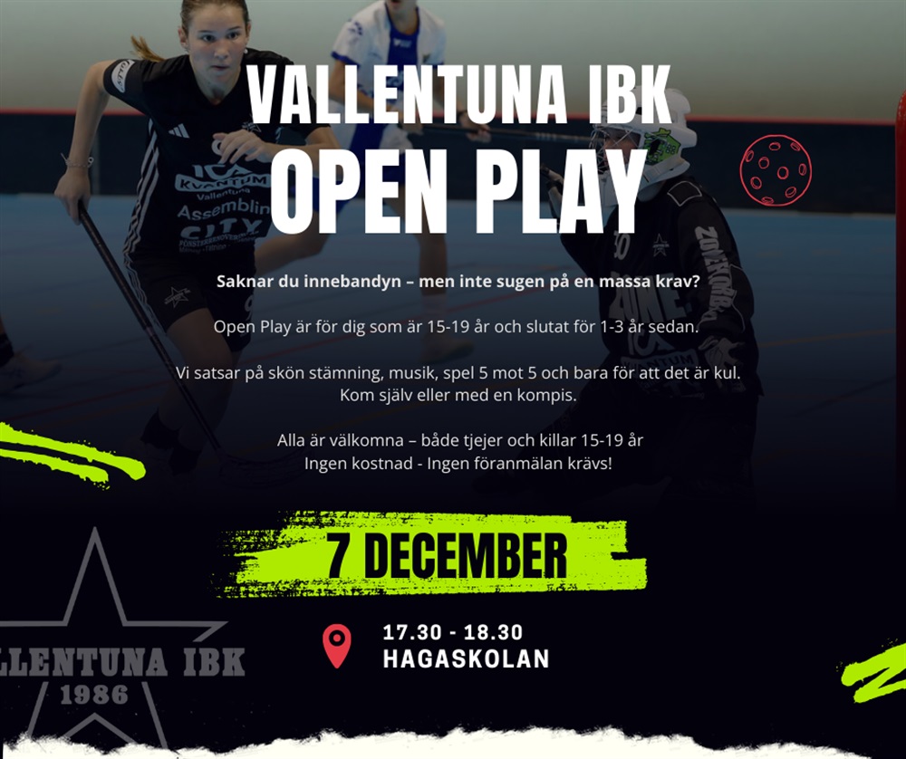 Open Play är ett innebandytillfälle för dig som är 15-19 år och slutat med innebandy för 1-3 år sedan. Vi vet att många saknar att lira tillsammans och vill satsa på träningar för alla som bara vill spela, för glädjens skull.