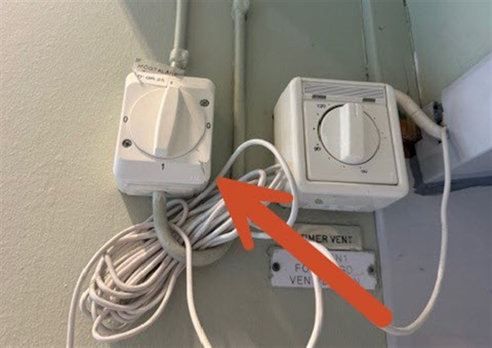 Precis innanför den vänstra entrédörren in till hallen finns en brytare. Det står högtalare på den. Vrid den till 0 och den stänger av både högtalare och kamera.