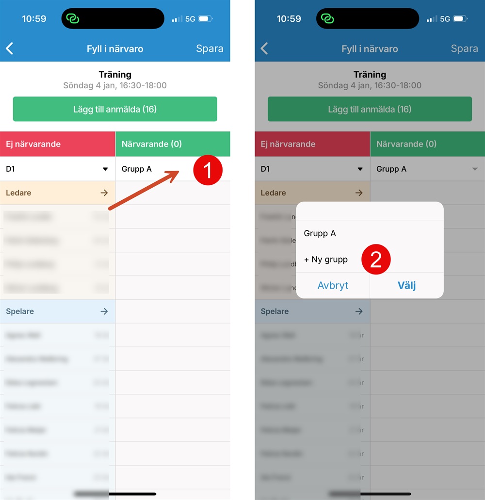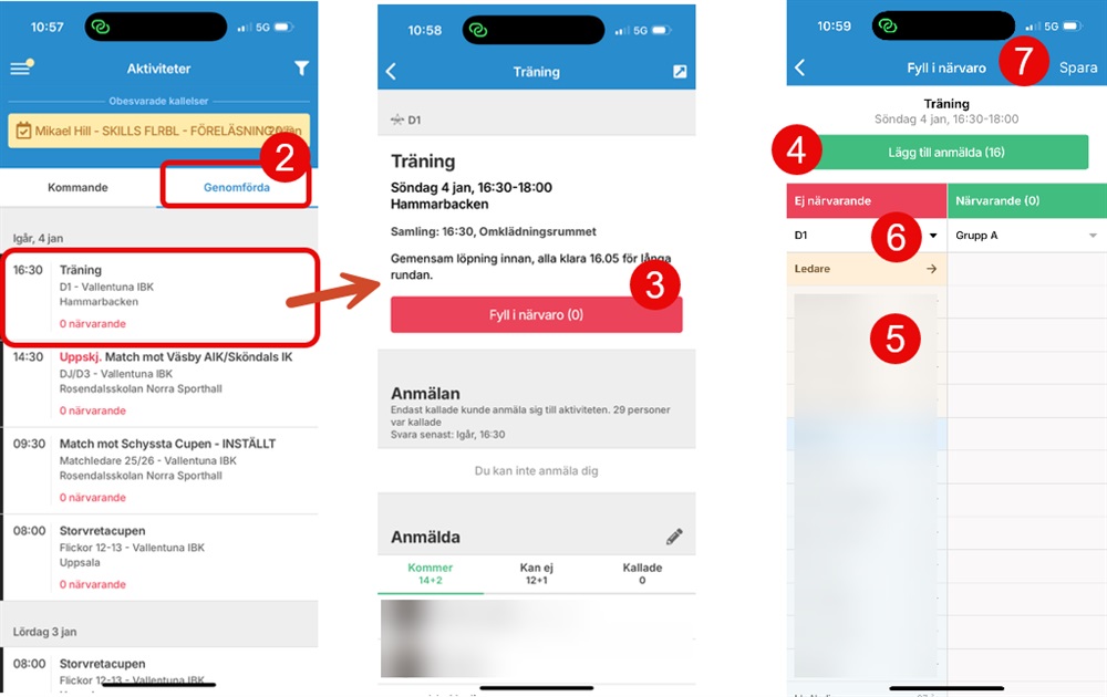 Rapportera närvaro på alla aktiviteter för laget