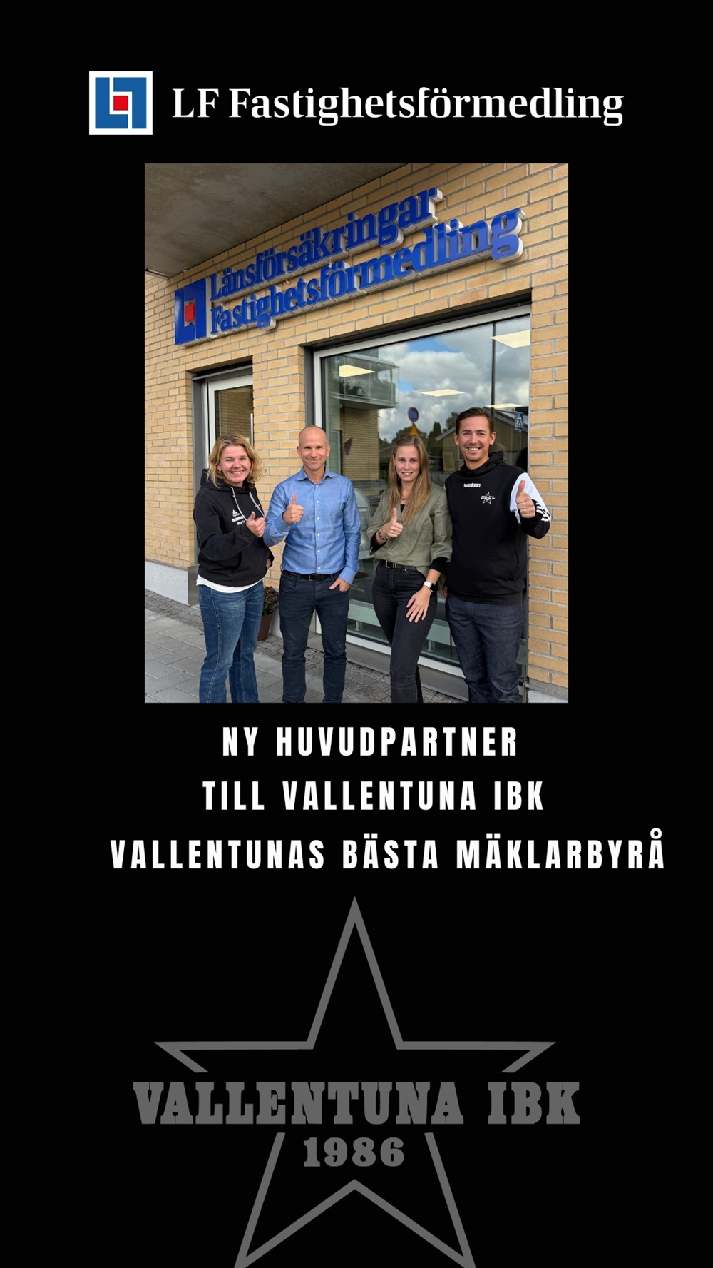 Vi är glada att från Styrelsens håll presentera LF Fastighetsförmedling Vallentuna som kliver in som en av våra huvudpartners till föreningen och det enda mäklarföretag vi ingår partnerskap med för säsongen 26/27.