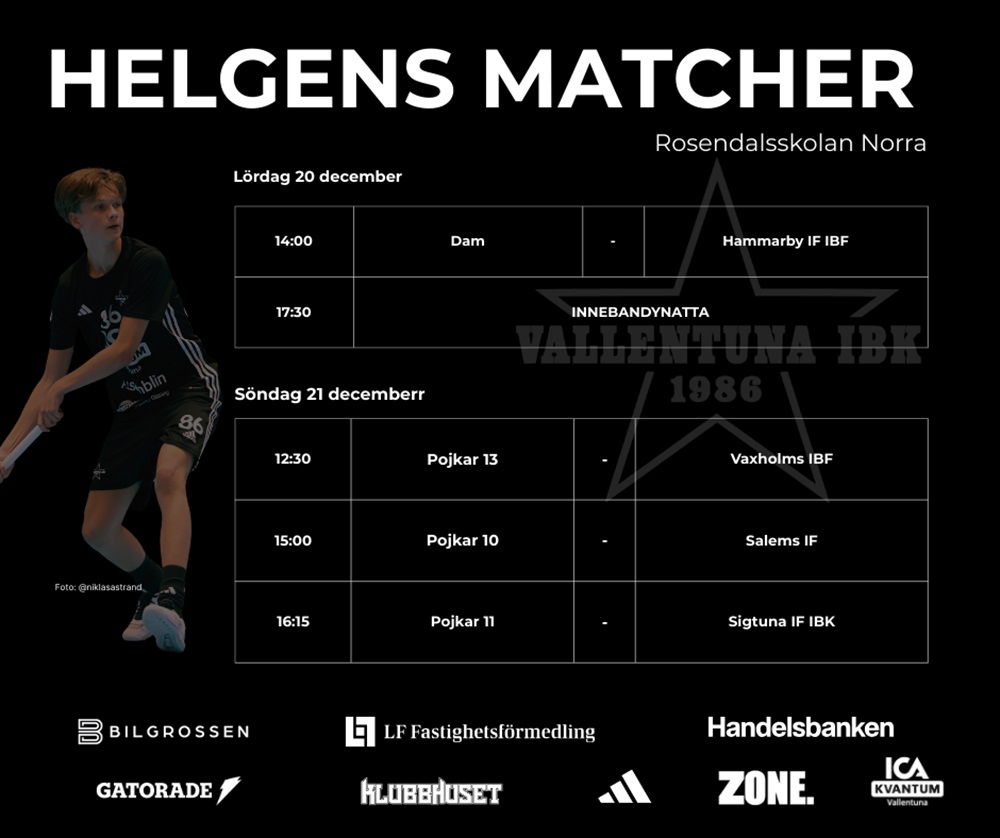 Nu är det inte många dagar kvar till jul och det blir en kort paus från innebandy. Men innan vi tar paus är det 4 matcher hemma i helgen. Våra damer tar emot serieledande Hammarby kl 14 på lördag. Det vill du inte missa.