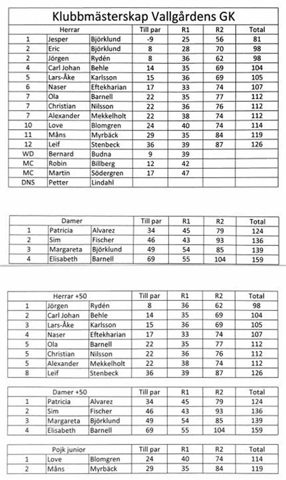 Årets KM för Vallgåden GK 2025, spelade över två dagar. Fredags kväll och lördags förmidag.