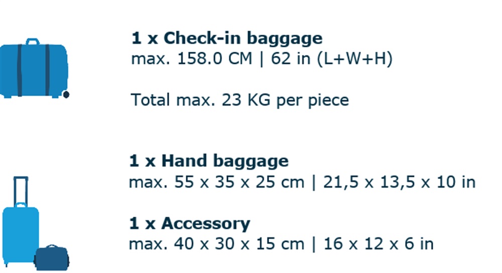 Handbagaget checkas ej in utan ni ansvarar för den väskan under eran resa.
