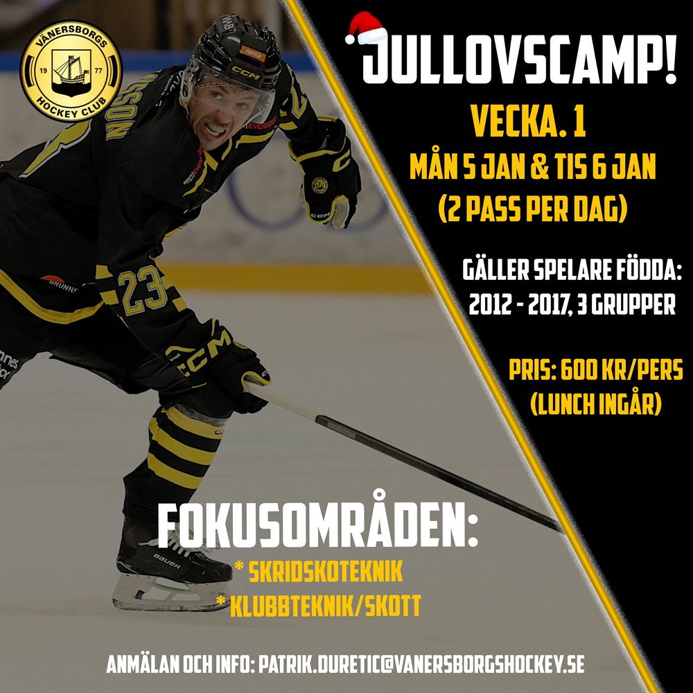 Under vecka 1 2026 arrangerar vi en tvådagarscamp (måndag 5 jan & tisdag 6 jan). Denna riktar sig till spelare födda 2012 – 17 och vi kommer dela upp dessa i tre grupper. En för födda 2012 – 13, en för 2014 – 15 och en för 2016 - 17.