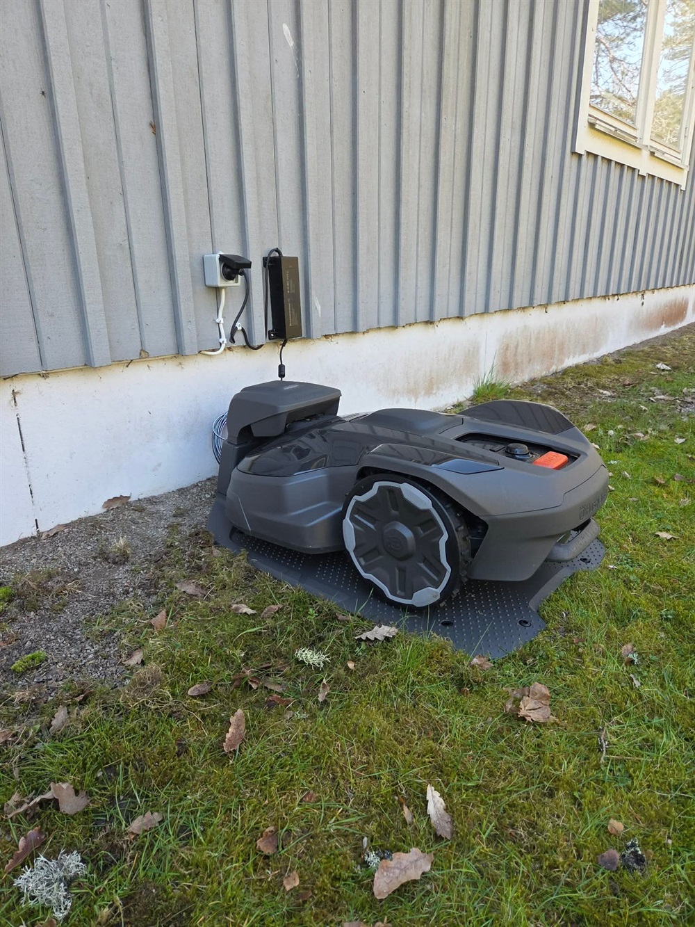 Den kommer att ha gräsmattorna som huvud syssla och arbeta lite när den vill. Förhoppningen är att den inte skall störa vår vanliga verksamhet, skulle den göra det så hör av er till stug & bygg så skall vi se till att styra upp den lite....