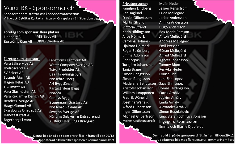 Detta är sponsorer som stöttat fram till den 29/12, nästa bild med fler sponsorer kommer inom kort.