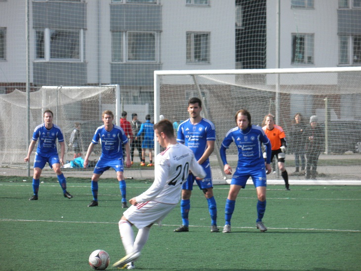I ett underbart fotbollsväder med strålande solsken och en temperatur runt nollan fick vi för första gången den här säsongen visa upp oss för hemmapubliken. Assyriska IF Norrköping stod för motståndet. Intressant med tanke på att det är de vi möter i seriepremiären. Precis som förra helgen började vi lite trevande med ett alldeles för slarvigt och hafsigt passningsspel. Vi tappar mycket boll och gör enkla misstag vilket ger Assyriska ett övertag inledningsvis. Vi kom fel i positionerna och hittade inget flyt i vårt spel. En anledning kan vara att de satte en väldigt hård och hög press på oss. Assyriska tar ledningen i den 23 minuten, alldeles för enkelt efter en rad individuella misstag. Jag tror att vi innan målet hade fyra chanser att få undan bollen men tappar den vid samtliga tillfällen. Här har vi lite att jobba med. Vi spelade upp oss och skapade en hel del under andra halvan av första halvlek. Vi fick till 2-3 riktigt farliga hörnor och en handfull ganska klara målchanser som deras duktiga målvakt lyckades avvärja. Pausresultatet 0-1 känns därför lite missvisande.
