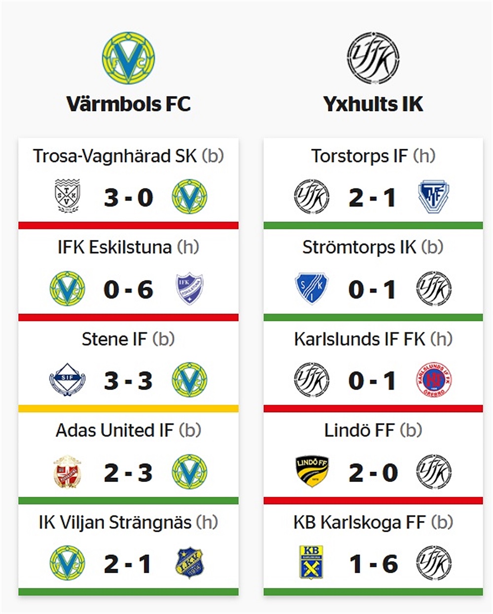 Matchstart lördag 13.00 på IP. På andra sidan står Yxhults IK, laget skuggar topp trion och behöver en trea för att inte tappa mark. Tabell och resultat - Svensk fotboll Laget hade en tillfällig dipp men är tillbaks på vinnarspåret i jakten på retur till division 2. Vi har tätt matchande då vi spelat två cup matcher under seriespelet. Vi har en avstängning, ingen hos Yxhult. Avstängda spelare - Svensk fotboll En väg till poäng idag blir att hålla Nadir Ayeva - Spelarstatistik - Svensk fotboll borta från målprotokollet. Senaste mötet på IP är från förra säsongen och vi tar gärna en repris på resultatet. Värmbols FC - Yxhults IK - Matchfakta - Svensk fotboll