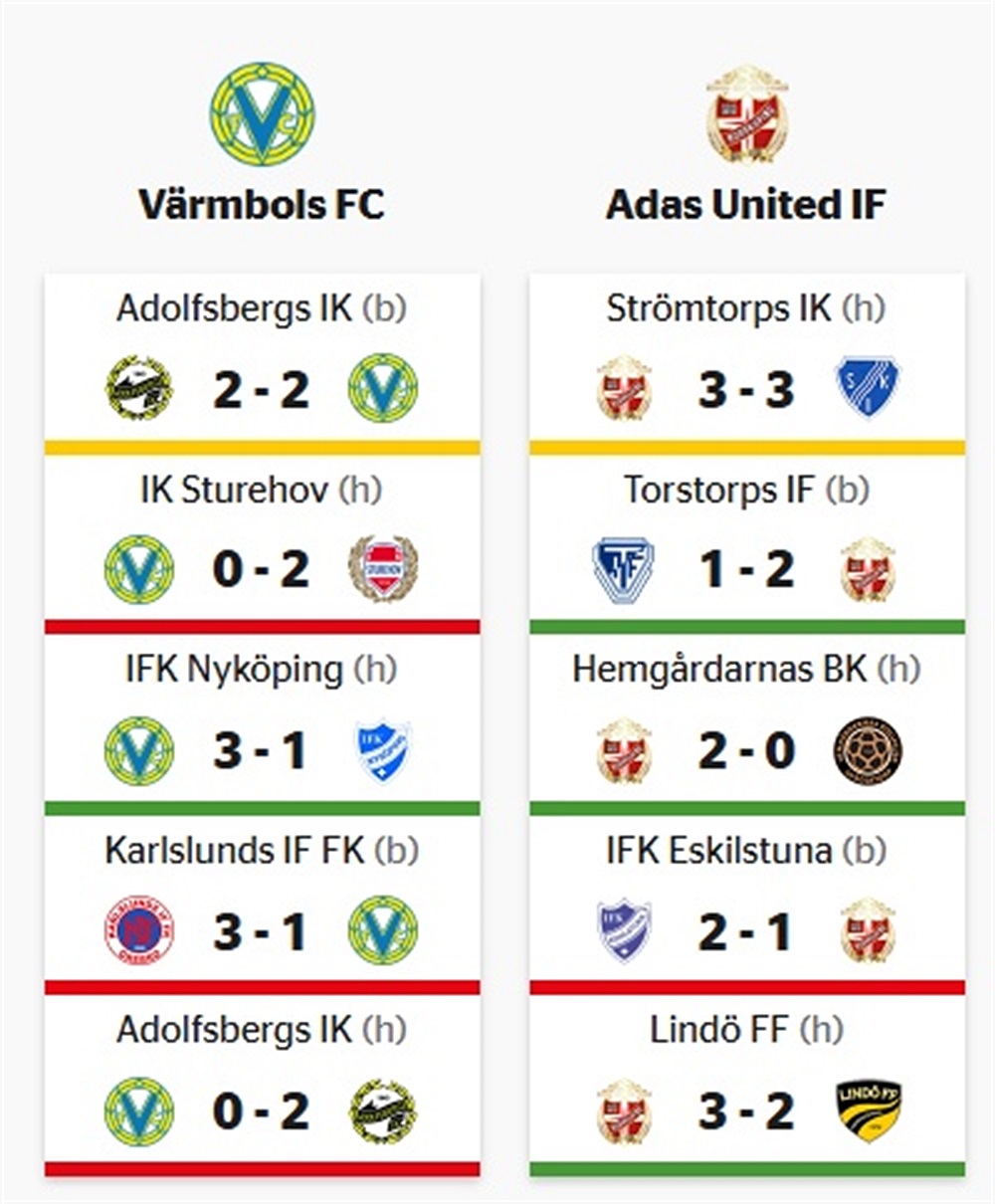 Kvällens match på IP startar 19.00, på andra sidan väntar Adas United IF. Vårens match mot Adas gav 3 poäng. Adas United IF - Värmbols FC - Matchfakta - Svensk fotboll En ny trea skulle behövas för att närma oss lagen över strecken. Adas är inne i en positiv trend med bara en förlust 5 senaste mot topplaget IFK Eskilstuna. 2024 blev vi nollade på hemmaplan vilket vi inte vill uppleva igen