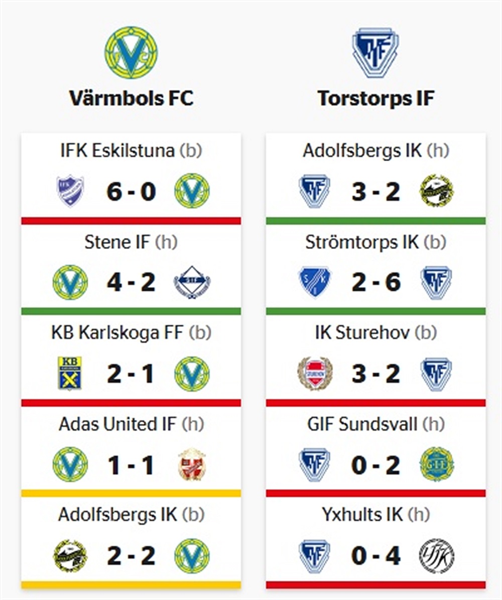 Torstorps IF har vi spelat en träningsmatch mot och en seriematch i år. Båda slutade just 2-2. Värmbols FC - Torstorps IF - Matchfakta - Södermanland. Träningsmatchen tappade vi lite onödigt på slutet, dessvärre en sen kvittering även i seriematchen (96e) Torstorps IF - Värmbols FC - Matchfakta - Södermanland . Torstorps IF har fått upp farten och har två raka segrar. Dessa två segrar har tagit dem upp på säker mark. För oss räcker inte kryss så långt utan ska vi komma ikapp så är det en trea som gäller. Som vanligt så är det åter igen en 6 poängs match. Ingen avstängning hos oss en hos Torstorps IF.