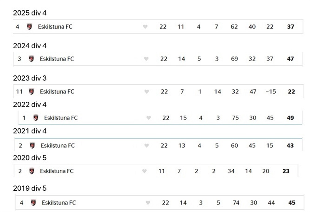 Eskilstuna FC är ett ungt lag, bildad 2014 och uppstart i division 7. Sedan 2021 ett stabilt division 4 lag med en utflykt till division 3. Inga seriematcher mot VFC innan i år.